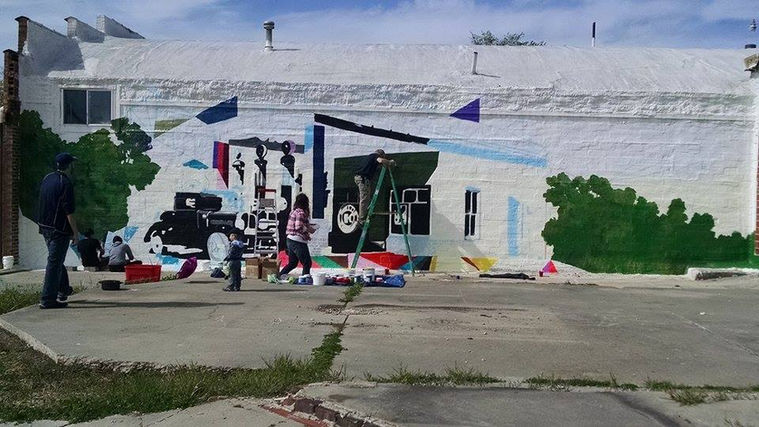 Collaborative Community Mural inspired by the history of Lamoni Iowa, and the Jefferson Highway 2017.